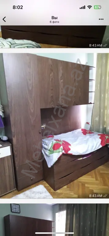 - Məkan qənaət edən dizayn: çarpayı dəsti şkaf və asma dolablarla birləşir, kiçik otaqlar üçün uyğundur