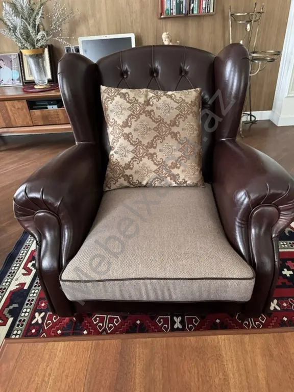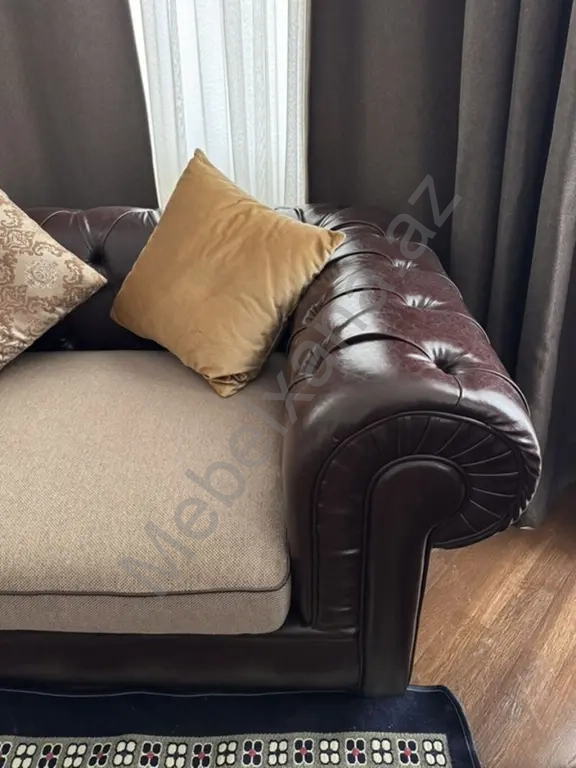 - Rəng palitrası: tünd şokolad qəhvəyi (dəri hissələr) + bej (oturacaq və yastıqlar)