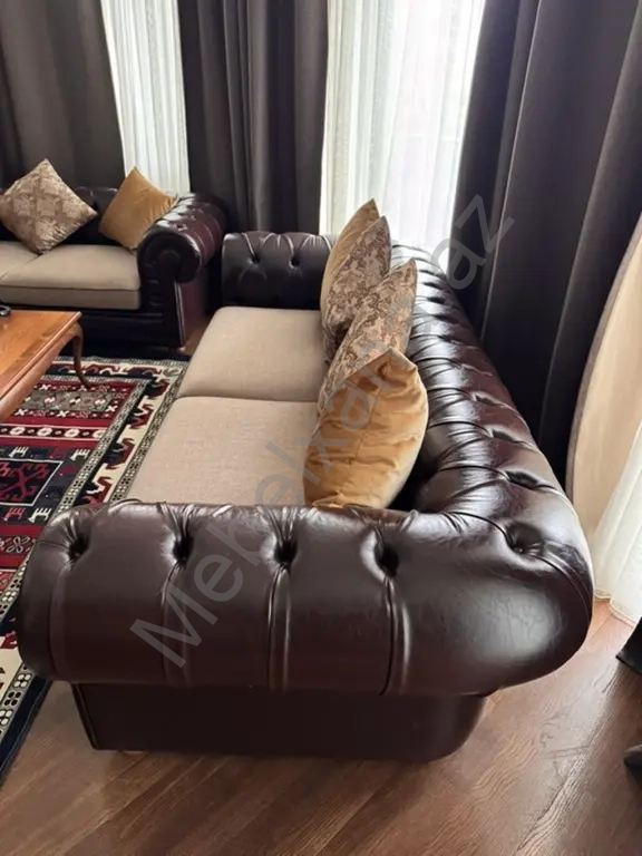 - Üslub: Chesterfield elementləri – dərin kapitone işləməli arxa və qol hissələri, yuvarlaq konturlar