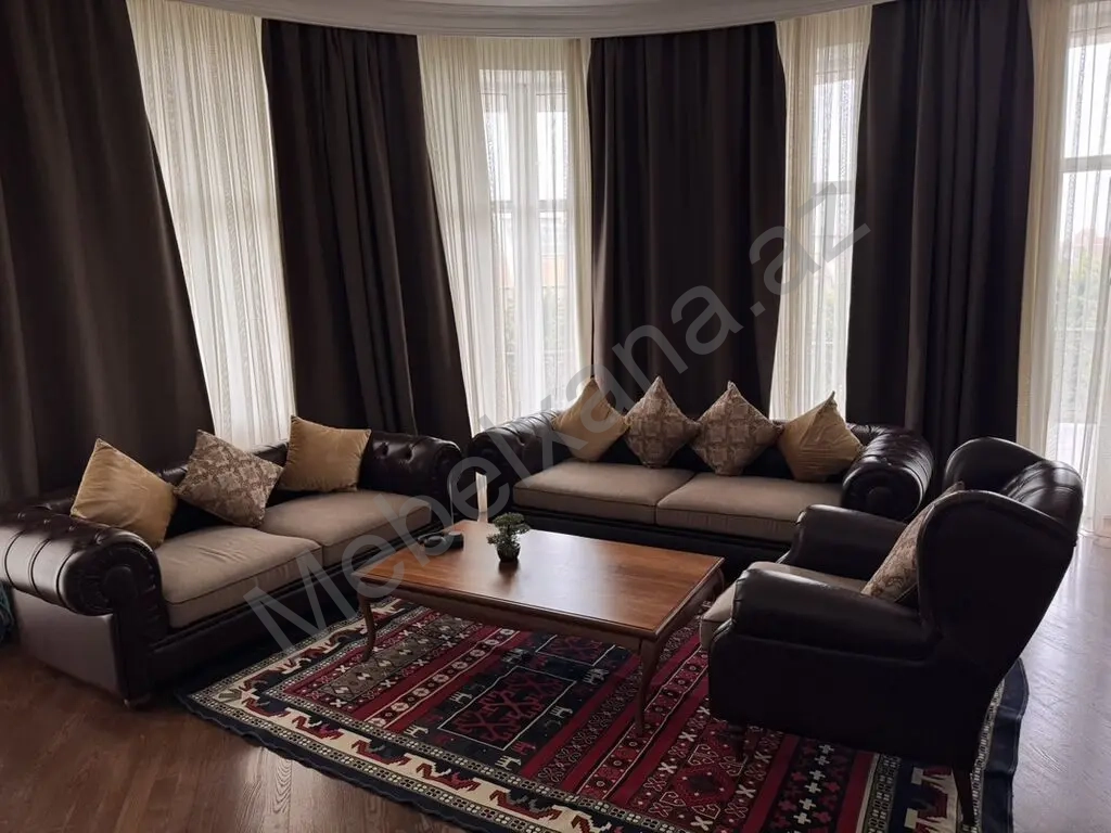 Qeyd: Fotoşəkillərdə göstərilən xalça və masa məlumat xarakterlidir; dəst əsasən 2 divan + 1 kreslodan ibarətdir.