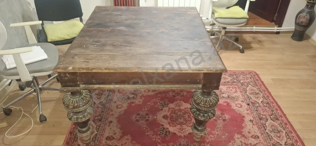 Qədimi masa, təxminən xıx əsrin sonu, xx əsrin əvvəlinə təsadüf edir. Yaxşı vəziyyətdədir.