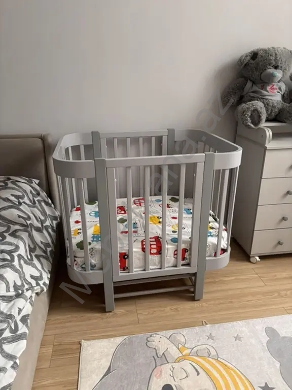Uşaq beşiyi – oval formalı, boz rəngdə